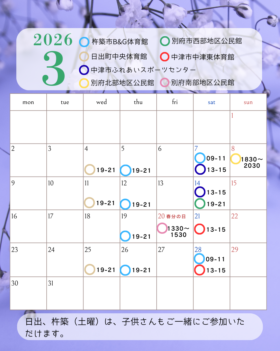 2026年3月のスケジュールを更新しました。